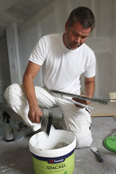 När det gäller produkter försöker vi i möjligaste mån hitta ekologiska spackel- och färgprodukter som passar för de uppdrag vi får.